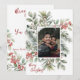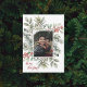 Marco de foto festivo de greenery tarjeta de vacaciones creado con ramas de pino acuarela y bayas de acebo sobre un fondo verde suave para la tarjeta de vacaciones más hermosa para toda tu familia y amigos. La felicitación de Feliz Navidad se agregó al frente de esta belleza para agregar elegancia extra. Simplemente encantador.