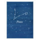 Un poster con la constelación de Pisces en el cielo nocturno con un fondo de color índigo. Divertido poster para usted o para darle a un amigo de Pisces. Pueden encontrar las otras constelaciones de signos de estrella en una variedad de artículos en mi tienda.