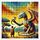 Pixel art of a fearless dragon trainer, standing proudly with their mighty dragon. Retro gaming vibes meet fantasy adventure