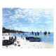 En la fascinante pintura "Beach at Sainte-Adresse", los espectadores son transportados a la pintoresca ciudad costera de Sainte-Adresse, cerca de Le Havre en Normandía, Francia. La escena se despliega con vistas panorámicas a la playa de arena, bañada por la suave luz dorada del sol. En el contexto de una amplia extensión de cielo y mar, las figuras recorren la orilla y sus siluetas marcan el horizonte. Los niños juegan en la arena, mientras los veleros saltean en las aguas, sus velas que cuelgan capturando la brisa. El dominio de la luz y el color por parte de los artistas está en toda pantalla, mientras captura los cambiantes tonos del mar y el cielo. El agua brilla en tonos azules y verdes, mientras que las nubes se deslizan perezosamente sobre la playa, colocando sombras flotantes en la parte de abajo. A través de sus audaces pinceladas y su aguda observación de la naturaleza, el artista infunde la escena con un sentido de energía y vitalidad, invitando a los espectadores a sumergirse en la intemporal belleza de la costa. "Playa en Sainte-Adresse" es más que una pintura —es una ventana a un mundo de sol, mar y arena, donde los simples placeres de la vida se celebran en toda su gloria.