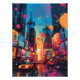 Este dinámico diseño de pop art captura un atardecer en una bulliciosa ciudad, con taxis amarillos y luces de neón que iluminan las calles. La obra transmite la energía y la vitalidad de la vida urbana en su máxima expresión, destacando el contraste entre el cielo colorido y el paisaje urbano vibrante. Perfecto para quienes buscan añadir un toque de modernidad y emoción a sus espacios, este póster es ideal para decorar hogares y oficinas con una expresión artística y contemporánea.