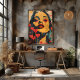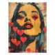 Este poderoso diseño de pop art presenta un rostro femenino con una expresión enigmática y labios rojos, rodeado de corazones flotantes. La obra captura la intensidad y el misterio del amor con un estilo audaz y contemporáneo. Perfecto para los amantes del arte moderno que buscan añadir un toque dramático y vibrante a sus espacios. Ideal para decorar hogares y oficinas con un estilo artístico y sofisticado
