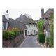 Escena de pueblo de cabañas con tejado de paja, en Porlock, Parque Nacional Exmoor, Somerset, Inglaterra, Reino Unido