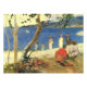 Paul Gauguin. Transportadores de frutas en Turín Cove o en la costa II. Paisaje veraniego. Un grupo de personas están sentadas a orillas del mar azul. Un grupo de personas está caminando por la ladera hacia el agua. Los árboles crecen en primer plano. Se ve una pequeña ciudad al fondo. Reproducción de obras famosas de imágenes artísticas de dominio público.