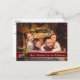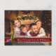 Un moderno diseño de postales para Navidades de fotografía con una foto familiar llenando la cara de la tarjeta. Decoración divertida de elfo con banda de texto rojo oscuro para sus palabras.Puede personalizar el saludo de los Navidades de fondo, su dirección de retorno y sus nombres en script cerca de la parte inferior con espacio para añadir una nota personal manuscrita.