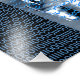 Poster de cifrado digital con bóveda bancaria y código binario cifrado.