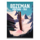 El poster de esquí Bozeman Montana presenta un bonito y detallado estilo vintage, con un telón de fondo ilustrado del hermoso paisaje.