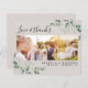 Foto de presupuesto Eucalyptus Boda Gracias Tarjeta Se ha incluido un mensaje original para ahorrarle tiempo escribiendo a mano uno, puede editarlo para usar sus propias palabras de agradecimiento si es necesario. Las fotografías de los modelos son para fines ilustrativos y se pueden cambiar por uno mismo. **POR FAVOR LEA ANTES DE COMPRAR** 1. La papelería presupuestaria mide 4,5" x 5,6" y encaja dentro de un sobre A6. Puede agregar sobres blancos a su pedido. 2. Cada hoja es un artículo - no se requiere ningún corte. 3. El material de cartón es blanco brillante con un acabado semi-brillante y peso de 110 libras que es adecuado para el papel. 4. NO le aconsejamos que elija la opción de papel satinado ya que es un papel mucho más delgado de 80lb, que se parece más a páginas de revistas que a cardstock. 5. Si haces cambios y el diseño está recortado o no aparece en la pantalla, por favor utiliza el servicio de diseño en vivo para ayudarle a arreglarlo. 6. Su pedido va directamente a las impresoras. Lo que ve en la pantalla es lo que se imprimirá y se le enviará. Compruebe tres veces si hay errores ortográficos o información incorrecta antes de realizar el pedido.
