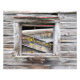 Los restos de un viejo cartel en la ventana de un granero en ruinas.