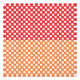 La polka blanca se pega sobre un fondo medio rojo medio naranja.
