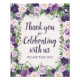 Thank your guests in style with this elegant “Thank You for Celebrating with Us” sign, designed to add a beautiful finishing touch to your event. Featuring a soft watercolor floral border in shades of lavender, plum, and fresh greenery, this design creates a romantic garden-inspired feel that complements weddings, bridal showers, milestone birthdays, and special celebrations. The graceful script lettering paired with classic serif accents ensures the message is both warm and easy to read. The added “Please Take One” line makes it perfect for guest favor tables, encouraging guests to enjoy a thoughtful takeaway. Printed on photo paper, this sign is ideal for framing or displaying on a tabletop or easel. A lovely coordinating piece for floral-themed event décor.