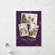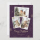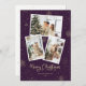 Foto personalizado de color púrpura y dorado. Tarjeta navideña con fotos de collage, un elegante guión y un fondo morado adornado con nieve en caída y copos de nieve. Personalice fácilmente esta moderna tarjeta de vacaciones con sus fotos y texto.