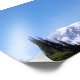 Vista del monte Rainier, que alcanza su punto máximo por encima de una colina verde con árboles.