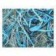 Un diseño colorido de red de pesca y una cuerda azul brillante de un barco y almacenado en el espigón del puerto.