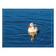 Un lindo pato blanco se baña y se refleja en el agua azul brillante.