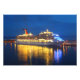El amanecer está en camino, y un crucero, en llamas con luces que crean reflejos en la superficie del agua, ya está atracado en Port Canaveral y listo para dar la vuelta al día. Pronto, cientos de pasajeros regresarán a casa, mientras otros esperan el comienzo de su viaje.