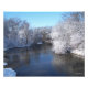 Hermosos árboles nevados se reflejan en un río. Una hermosa escena de invierno.