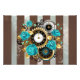 Reloj de época con estampado, adornado con joyas, manos de la hora de oro y números latinos con rosas turquesa sobre fondo marrón y rayas. Estilo Steampunk.