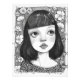 Retrato de un chica con flores. Dibujo de línea blanca y negra.