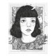 Retrato de un chica con flores en el fondo. Dibujo de línea blanca y negra.