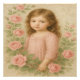 Este diseño atemporal presenta a un joven chica dulce vestido con un suave vestido rosa, rodeado de delicados rosas en un ambiente agradable de inspiración vintage. El trabajo de arte evoca la inocencia, la calidez y la elegancia clásica, perfecta para una decoración de vivero, tarjetas de felicitación o regalos reflexivos. Trae un toque de encanto nostálgico y belleza romántica a tu espacio con este retrato cautivador.