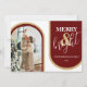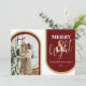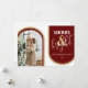 Estas tarjetas de Navidad retro minimalistas son perfectas para enviar deseos de vacaciones de Navidad. Las tarjetas presentan un tema retro con tonos de rojo y dorado. Una plantilla de saludo de Navidad moderna, su foto enmarcada con arcos en tonos rojos y dorados modernos. Los estilos de fuente y el color se pueden cambiar haciendo clic en el enlace personalizar más después de personalizar.