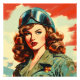 Si te gusta el estilo retro, este diseño será perfecto para ti. Muestra a una soldado.