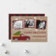 Tarjeta de Navidad con Foto Retro de Navidad con Camión Rojo Antiguo y Árbol de Navidad bajo la Nieve. Este diseño presenta un hermoso camión rojo antiguo estilo años 50 con un precioso árbol de Navidad completo en la parte posterior. Combinado con un hermoso fondo de papel kraft en la parte frontal realzado por copos de nieve que caen. La parte trasera presenta un fondo rústico de cuadros de búfalo. Haz que este diseño sea tuyo con muchas áreas para agregar detalles personalizados.