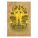 Máscara funeraria del rey Tutankamón sobre fondo de papiro.