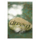 Foto de una roca con "Sueño" grabando flotando en un baño de aves creando un efecto surrealista de otro mundo. Se puede personalizar con un mensaje inspirador, pero "Sueño" casi lo dice todo.