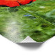 Diseño original de flor funky retro. Amarilla roja colorida después de la lluvia, fondo verde, efecto de pintura