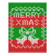 Patrón de punto en un estilo de suéter feo con campanas de jingle y texto de Feliz Navidad