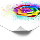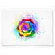 Rosa grande y floreciente con pétalos de arco iris sobre fondo blanco, pintado con salpicaduras de pintura colorida y brillante. 3.ª