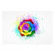 Rosa grande y floreciente con pétalos de arco iris sobre fondo blanco, pintado con salpicaduras de pintura colorida y brillante. 3.ª