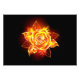 Rosa en llamas del fuego y la llama sobre fondo negro.