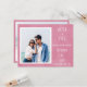 Foto moderna de la pareja Boda Guardar la tarjeta de invitación de fecha tarjeta plana con información del sitio web, fuente blanca, diseño de impresión de cartón texturado rosa.