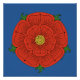 La rosa roja fue una insignia de la Casa de Lancaster durante las Guerras de los Rosas del siglo XV. Este ilustracion original de Richard H. Fay se basa en varios rosas heráldicos de época medieval.