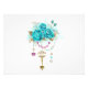 Llave de oro antiguo con rosas turquesa de moda decorados con hojas de oro blanco y cuentas rosas y azules. Color de moda. Rosas turquesas. Oro blanco. Tifanía azul.