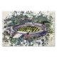 Capture the iconic beauty of the Ageas Bowl (The Rose Bowl) in Southampton with this stunning artistic aerial view. Featuring a unique painterly digital filter and a distressed white vignette, this piece highlights the stadium's distinctive circular architecture and lush green surroundings.