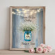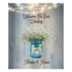 Fije el tono para su celebración rústica con este cartel de poster boda que incluye un frasco de albañil lleno de aliento de bebé, brillantes luces de cuerda y un fondo de tablero de madera. Ideal para bodas de granero, casas de campo o recepciones de temática campestre, este versátil cartel funciona como una bienvenida, un asiento o un acento decorativo. Personaliza tu propio mensaje para que coincida con tu evento.
