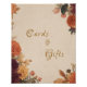 Romántico rústico de tarjetas de boda boho y letrero de regalos con flores de oro, crisantemo, dahlia floral otoño con un borde vintage. Naranja cálido, burdeos, tonos dorados y hojas de otoño se combinan con el beige para un estilo acuático botánico. Elegante diseño bohemio perfecto para celebraciones de primavera, verano o otoño con acentos de terracota y naranja quemado.