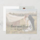 Tarjeta de agradecimiento de boda de fotografía de presupuesto moderno que incluye un diseño sencillo con "amor y agradecimiento" en una tipografía de escritura de estilo rústico junto con tus nombres y fecha boda sobre tu foto favorita con un overlay opaco. Esta elegante tarjeta de agradecimiento con un diseño minimalista es ideal para cualquier estilo de boda.