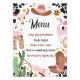 Rústico Rótulo del menú del primer rodeo rosado del de la comida del cumpleaños 2008. Cartel del menú de chica rosado y marrón con gorra de vaquera marrón y rosa, cráneo toro, cactus, cuerda, guante de vaquera, botas y más.