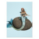 Representación digital en 3D de una hermosa sirena triste sentada en piedra sobre fondo azul