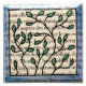 Arte de Marta Harvey. Esta pieza fue creada agregando texto francés a una baldosa, luego dibujando y pintando hojas y un borde con tinta.