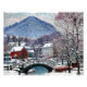 "Sandvika" es un cuadro evocador que capta la serena belleza de la aldea noruega de Sandvika. Este trabajo ejemplifica la capacidad de representar paisajes naturales con un toque impresionista característico. El cuadro presenta una tranquila escena en la orilla del río, con un pequeño pueblo enclavado entre colinas y árboles cubiertos de nieve. El río, probablemente el Sandvikselva, es central en la composición, reflejando el cielo y el paisaje circundante. El uso de una paleta de colores fresca, dominada por blancos, azules y grises, transmite efectivamente la atmósfera fresca y nítida de un día de invierno. Las pinceladas son sueltas y fluidas, capturando el juego de la luz sobre la nieve y el agua. Los edificios del pueblo están decorados con líneas suaves y difusas que se mezclan armoniosamente con el paisaje de los alrededores. El efecto general es de tranquilidad y belleza tranquila, típico de la capacidad de transformar escenas cotidianas en obras de arte cautivadoras. "Sandvika" es un testimonio de la versatilidad y profunda apreciación de los paisajes variados que se encuentran en Noruega. Refleja la maestría en captar los efectos transitorios de la luz y el tiempo, y la habilidad en transmitir el estado de ánimo sereno y contemplativo de un paisaje invernal.