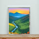 Este tranquilo cuadro capta la serenidad de un río sinuoso que serpentea a través de un valle verde. Bañada en los cálidos tonos de un sol que se pone, la escena evoca una sensación de paz y tranquilidad. Arboles exuberantes bordean las riberas de los ríos, sus hojas arden con los colores del otoño, mientras los picos nevados se elevan majestuosamente a la distancia. Esta exquisita obra de arte es una celebración de la belleza de la naturaleza y una adición perfecta a cualquier hogar.