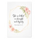 Elegant Proverbs 31:25 wall art featuring watercolor florals and a gold frame. Perfect for living rooms, bedrooms, or inspirational spaces, this print brings God’s Word into your home décor.