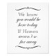 Esta hermosa huella conmemorativa del boda será una manera especial de honrar a aquellos que están para siempre en sus corazones. El diseño incluye la frase "Sabemos que estarías aquí hoy si el cielo no estuviera tan lejos" en una combinación de fuentes negro giratorias y de bloques. Los acentos negros en la parte superior e inferior completan el signo. Esto es perfecto para sentarse en una silla en la ceremonia de su boda para honrar a alguien especial.