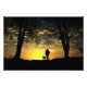 Silhouette de árbol de hombre y perro al atardecer. Hermosa imagen del anciano caminando por el bosque con su perro. frontiernow.com